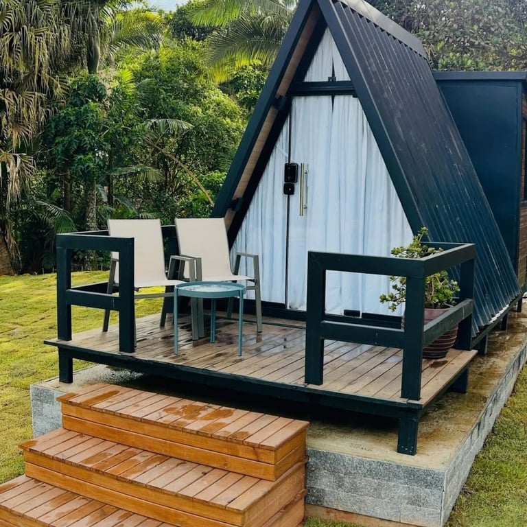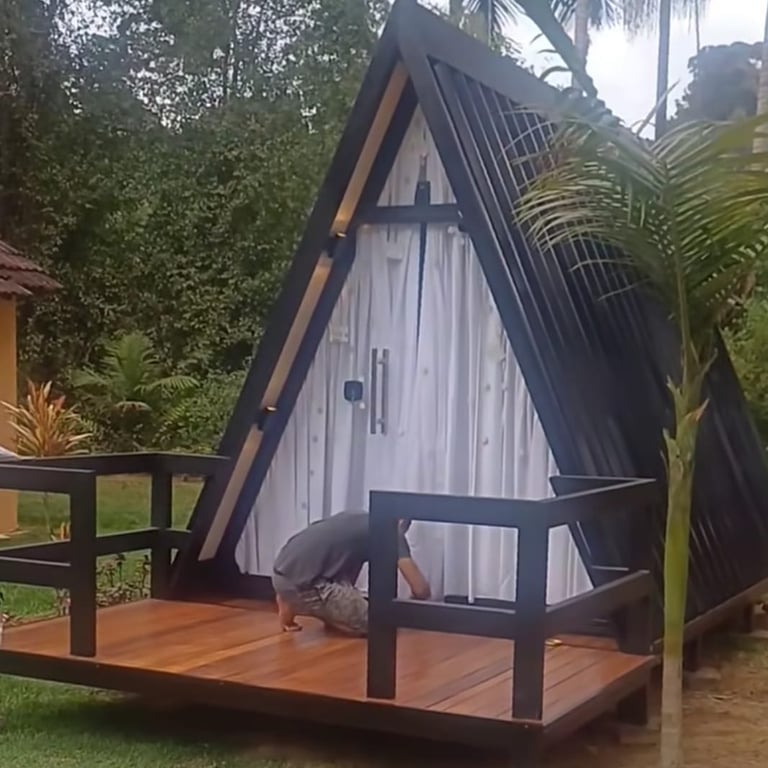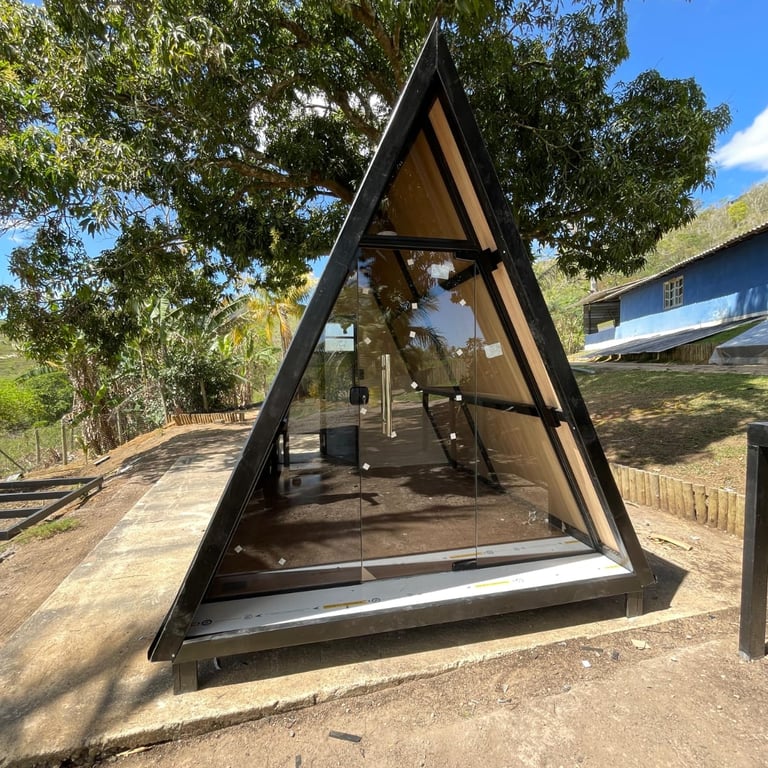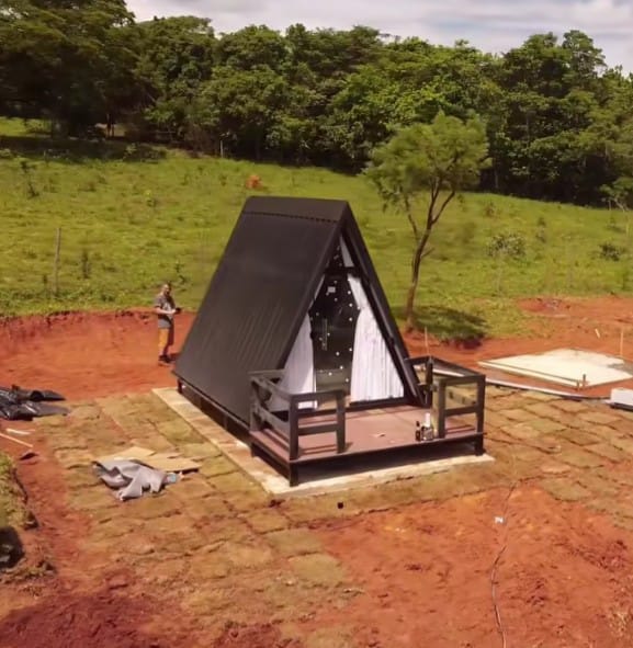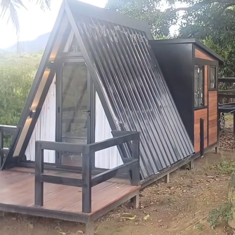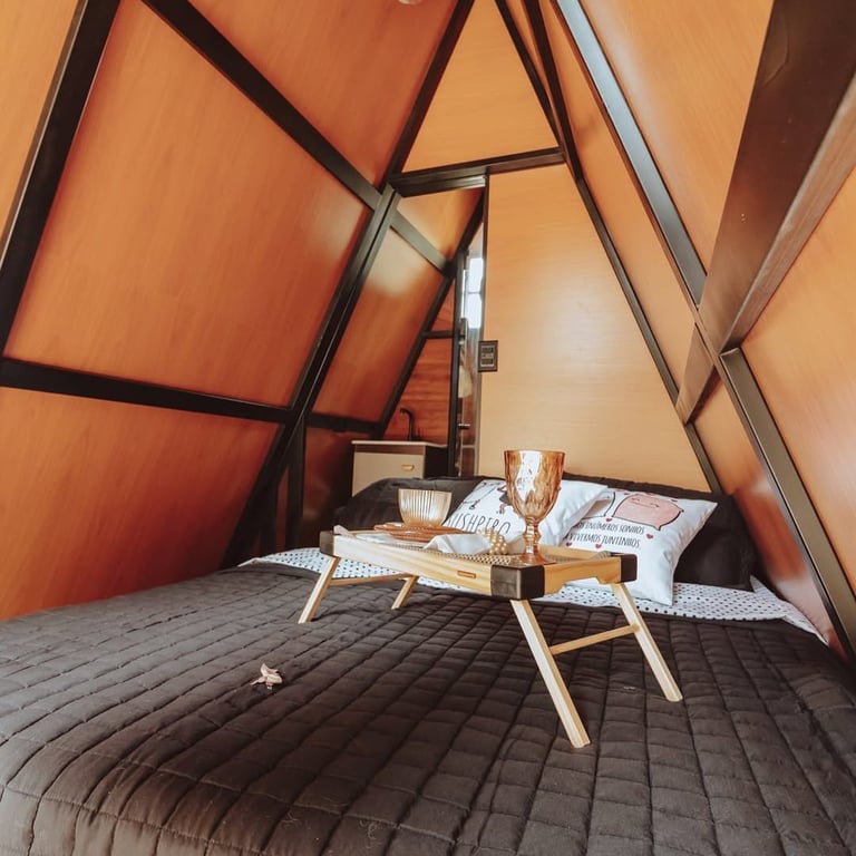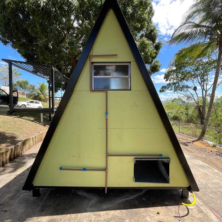 Cobertura Térmica: Telhado em Telha Sanduíche, a melhor solução para isolamento térmico e acústico, mantendo o interior do chalé sempre em uma temperatura agradável.